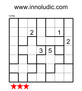 I present you 7x7 Ripple Effect puzzles with different difficulty levels in order to let you appreciate this puzzle. Please look at the rules to have explanations on how to resolve this puzzle.
