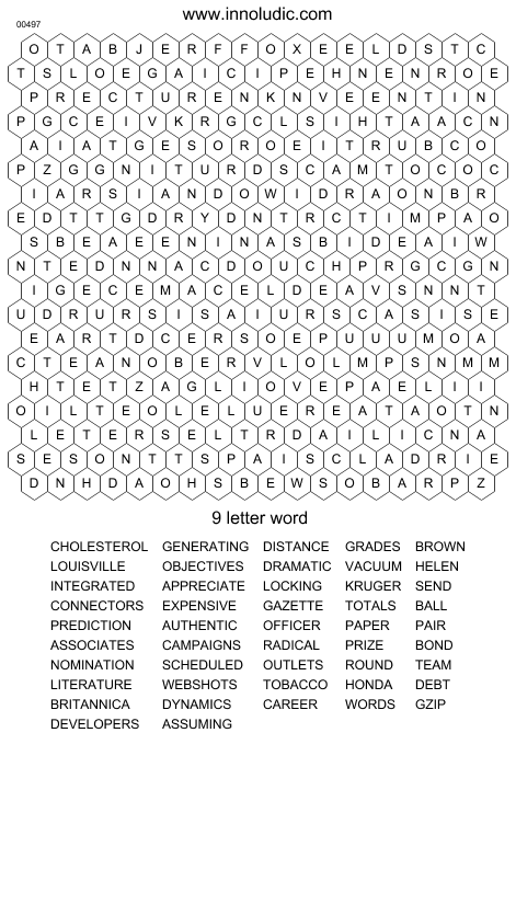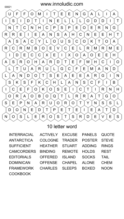 Fans of the letter game there is a Bee Words puzzle. Like a conventional Word seek puzzle, you must find in a grid all the words from a list. The leftover letters form the word to find. The main difference is that the grid is composed of hexagonal cells and the letters of a word follow a sinuous path instead of a straight line like in Work Seek. Enjoy !