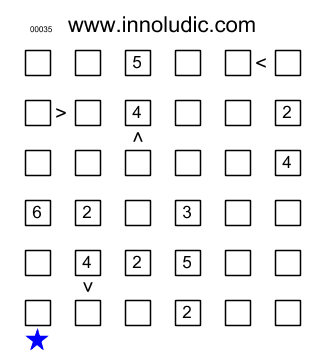 Le Futoshiki est aussi plaisant à faire qu'intéressant à résoudre. Les règles sont simples : placez les nombres de 1 à 6 dans chaque colonne et rangée de telle sorte que les signes d'inégalités ( plus grand > et plus petit < ) placés entre certaines cases soient respectés. Voilà c'est tout. Voici troi jeux faciles