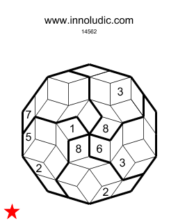 Le Sudoku Penrose (Règles du Sudoku Penrose), de prime abord, semble totalement étranger à un Sudoku. Mais ne vous y trompez pas, il possède toutes les caractéristiques d’un Sudoku : chaque colonne, rangée et région doivent être remplies avec une série ds nombre sans répétition. Dans ce cas-ci ,le Sudoku Penrose a 5 régions et 10 rangée et colonnes et il faut utiliser les nombres 1 à 8. La particularité la plus frappante est que les rangées et colonnes ne sont pas rectilignes, mais sinueuses, de plus il est impossible de distinguer une rangée d’une colonne à cause de cette particularité. Les régions sont de forme… comment dire… le mieux et de regarder par vous-même.