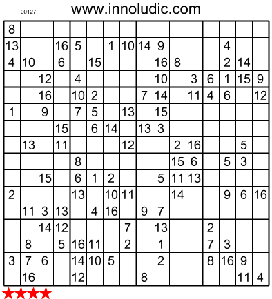 Voici un Super Sudoku, qui est en fait un Sudoku mais plus grand. Il contient 16 rangées, colonnes et régions, il faut donc utiliser les nombres 1 à 16.