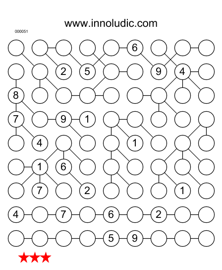 Voici deux jeux de Sudoku Chaine ( Règles du Sudoku Chaine), utilisez les nombres de 1 à 9.