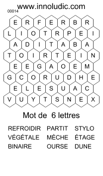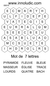 Voici de retour le jeu de lettre: Mots Abeille (Règles des Mots Abeille). Il faut trouver dans la grille tous les mots de la liste pour trouver le mot caché. Les lettres restantes dans la grille qui ne font partie d'aucun mot de la liste forment ce moté Voici deux jeux pour vous mettre en haleine.