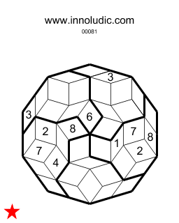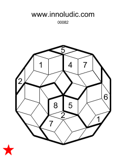 Voici deux jeux de Sudoku Penrose (Règles du Sudoku Penrose). La grille au lieu d'être carré avec des cases carrés à la forme d'un polygone de dix cotés (décagone). Les cases sont de quadrilatères et les colonnes au lieu d'êtres rectilignes sont plutôt sinueuses. Bienvenu dans le Sudoku Penrose !