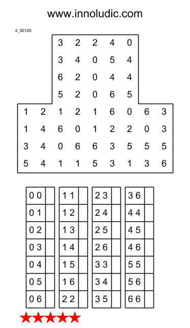 Je consacre le second article de l'année au jeu de Domino (Règles du Domino). Il suffit de placer dans la grille chacun des dominos de manière à ce que les nombres de la grille soient en accordance avec les nombres des dominos.