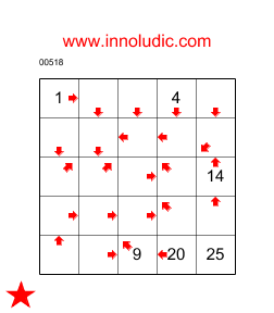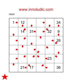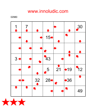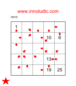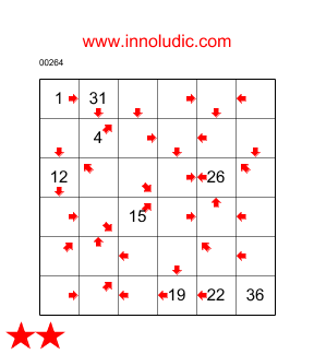 J'ai ajouté a mon palmares un nouveau jeu : le Laby Flèches (Règles du Laby Flèches) il est connu sous le nom de Arrows Maze du côté anglais. Comme je n'ai pas vue de nom francais pour ce jeu alors je le baptise Laby Flèches. Il faut trouver un chemin dans une grille qui passe par toutes les cases. En commencant par la case ayant le nombre 1 et se terminant pas la denière case, c'est dire la seule case qui na pas de flèches. La flèche dans la case indique la direction de la case suivante dans le chemin. Vous avez à indiquer dans chaque case quel est son numéro dans le chemin. Il y a quelques cases qui contiennent déjà les positions