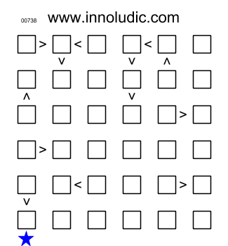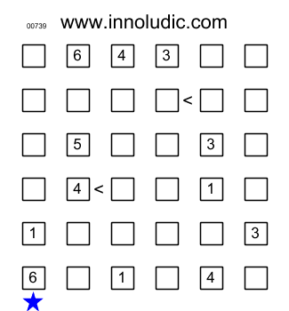 Voici trois Futoshiki pour nous tester un petit peu. Il suffit de placer les nombres 1 à 6 dans chaque colonne et rangée sans répétition tout en respectant les signes > et < entre les cases.