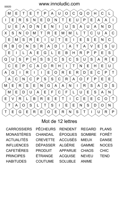 Pour tous ceux qui adorent ce jeu, je tiens à rappeler que récemment, j’ai publié un livre Essain de Mots Abeille. Ce livre est disponible chez Amazon France Essaim de Mots Abeille et Amazon Canada Essaim de Mots Abeille (et aussi tous autres sites d'Amazon). Bref totalement grissant !!!