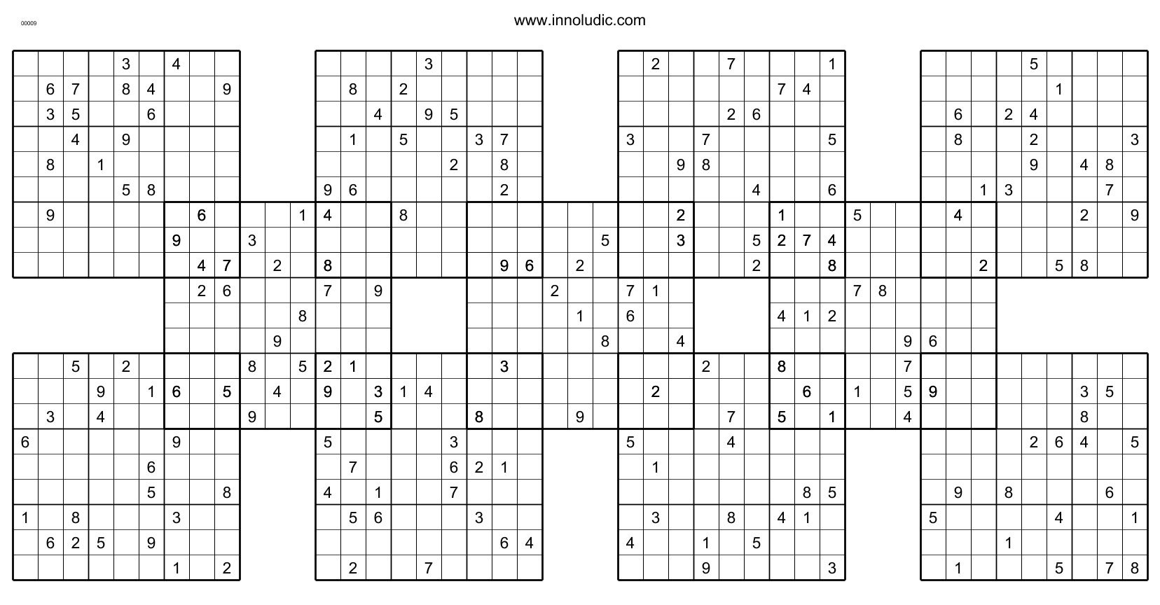 Voici deux Sudoku Chaine de taille 9x9 (Règles du Sudoku Chaine) pour vous divertir (utilisez les nombres 1 à 9).