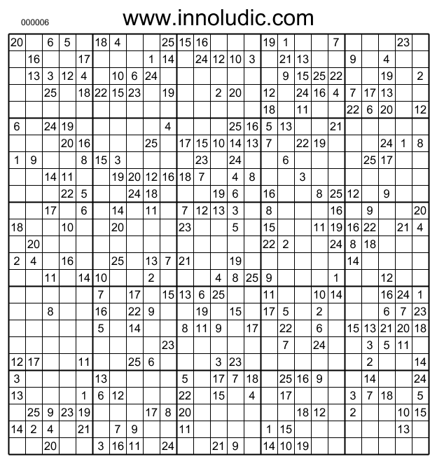 Voici un Sudoku maxi de taille 25x25, il faut entrer les nombres 1 à 25 dans chaque colonne, rangée et région. Allez... Affrontez !