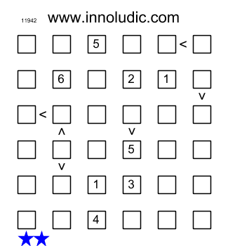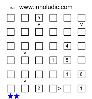 Voici deux Futoshiki pour bien mettre en forme nos neuronnes. Il suffit de placer les nombres 1 à 6 dans chaque colonne et rangée sans répétition tout en respectant les signes > et < entre les cases.