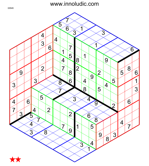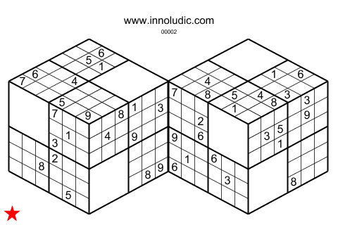 Voici un Muti Sudokube composé de deux cubes (Règles du Sudokube) qui n'attend que vous pour être résolu.