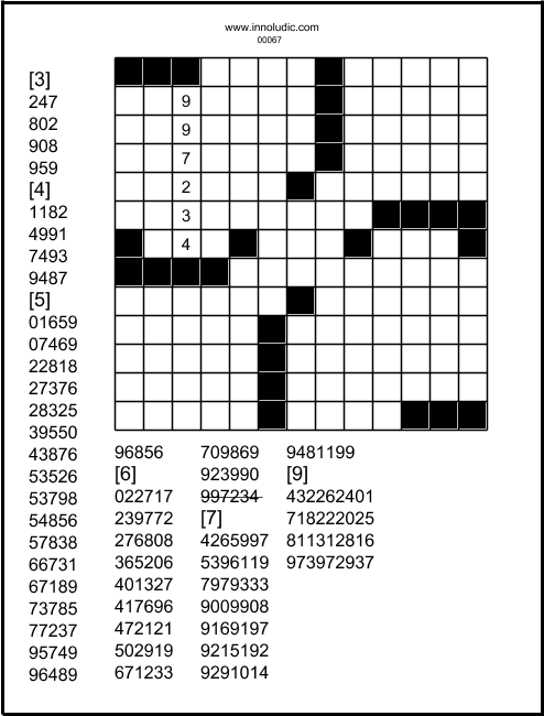 Donc voici un jeu de Nombres casés (13x13)