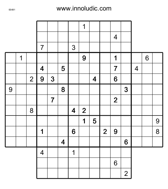 Voici 2 jeux de Multi-Sudoku composés de 5 Sudoku. Ce sont des Flower Sudokus.