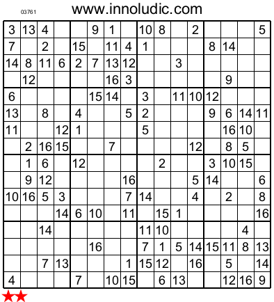 Voici deux Super Sudoku 16X16. Ces jeux sont parmi les plus appréciés par mes lecteurs. Je ne vous ferais donc pas languir plus longtemps, en voici justement 2.