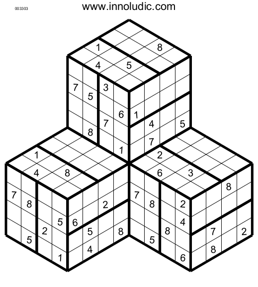 La semaine dernière je vous présentais le Super Sudoku tris Dimensions. Cette semaine c'est le Sudoku Trois Dimensions (Règles du Sudoku 3 Dimensions) qui est de dimension plus modeste. Même si son apparence est plus modeste, il n’en demeure pas moins que ce jeu est captivant.