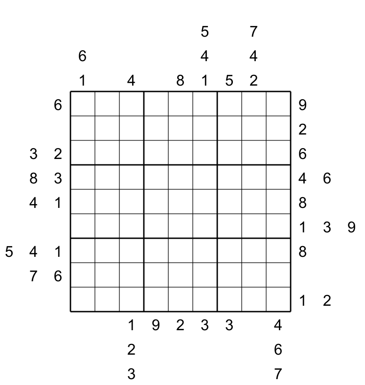 Pour beaucoup d'entre-vous c'est le temps des vacances. Voici donc trois Outside Sudokus pour votre agrément. (Règles du Outside Sudoku).