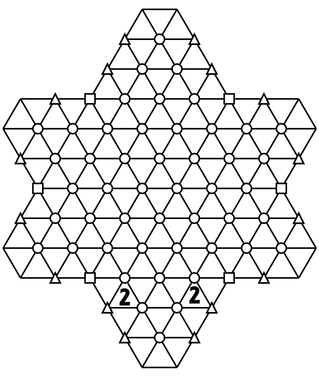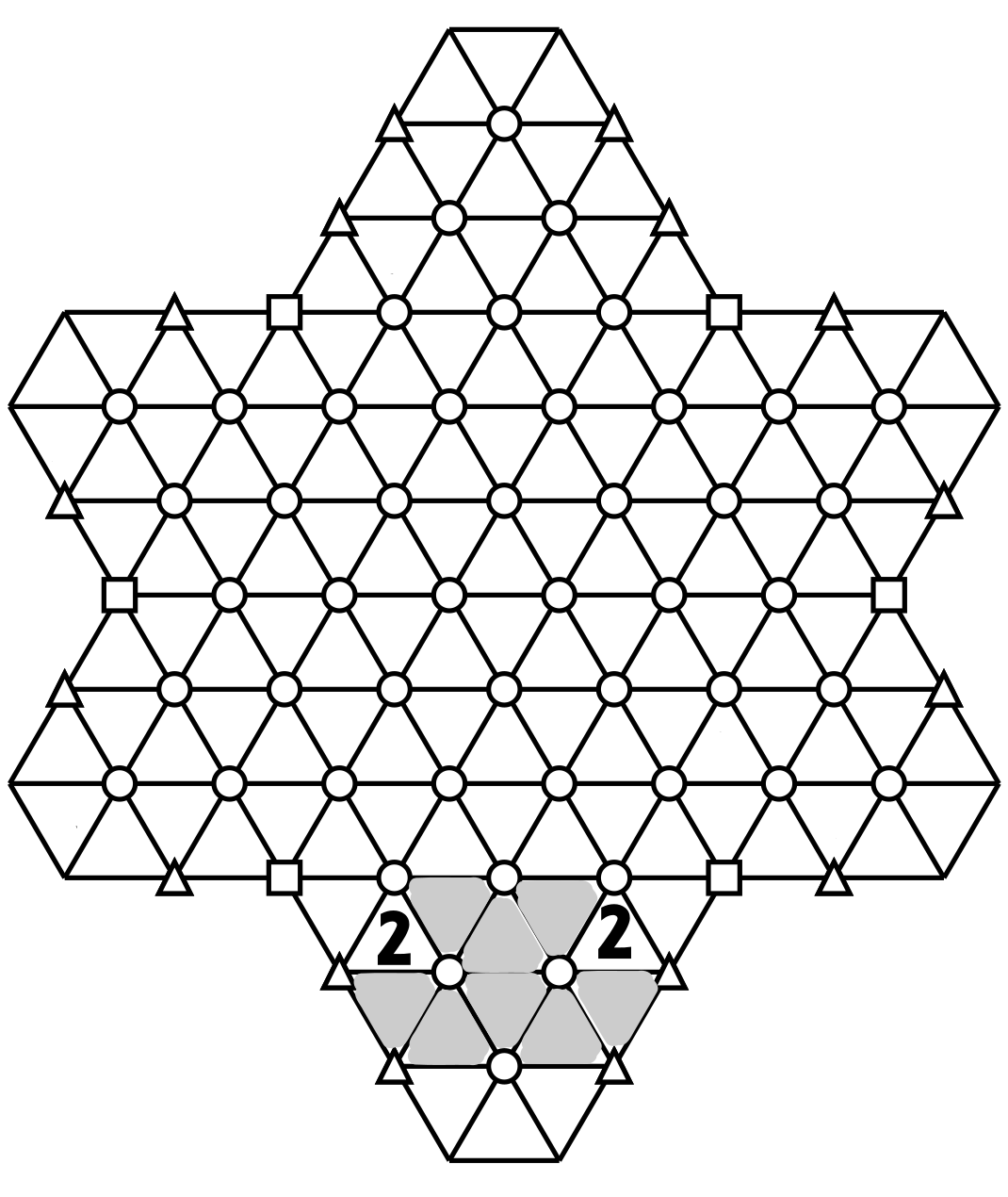 This means that all the triangles in grey) in these first two hexagons will not have a number 2.